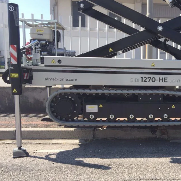 ALMAC BIBI 1270 HE crawler scissor lift. Equipped with Honda iGX390 Petrol Engine. Max working height 12 mt. With stabilisers. Self Levelling. Also available diesel engine version. Electric motor as option.