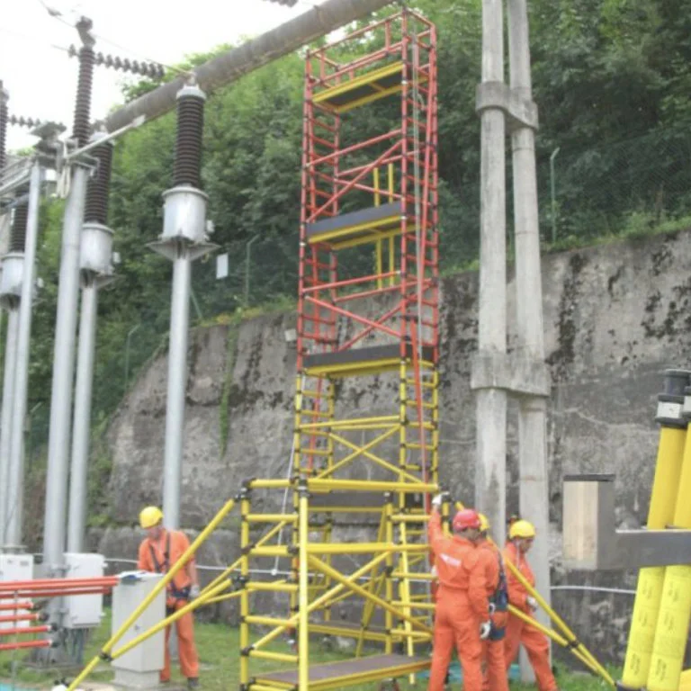 GENEX UNITEC TUV INSULATING SPAN 300 insulated modular fiberglass scaffolding. Compliance with the UNI EN 1004 and IEC 60855 standards. Ranks distance SPAN 300. length: 2 mt and 2.5 mt. Windth: 0.73 mt. Height: up to 8 mt. Approved by NATO for military use.