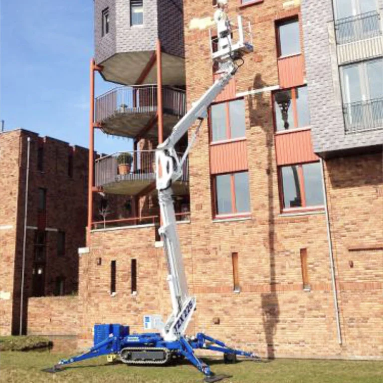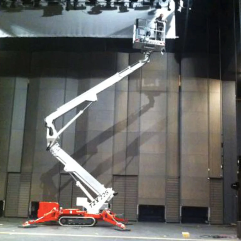 PALAZZANI TZX 225 crawler spider lift with double articulating telescopic booms. Equipped with Diesel Engine Kubota Z602 and Electric motor. Max working height 22.5 mt, Max outreach 10.25 mt. Boom rotation 360°, Basket rotation 90°+90°. Battery version available.